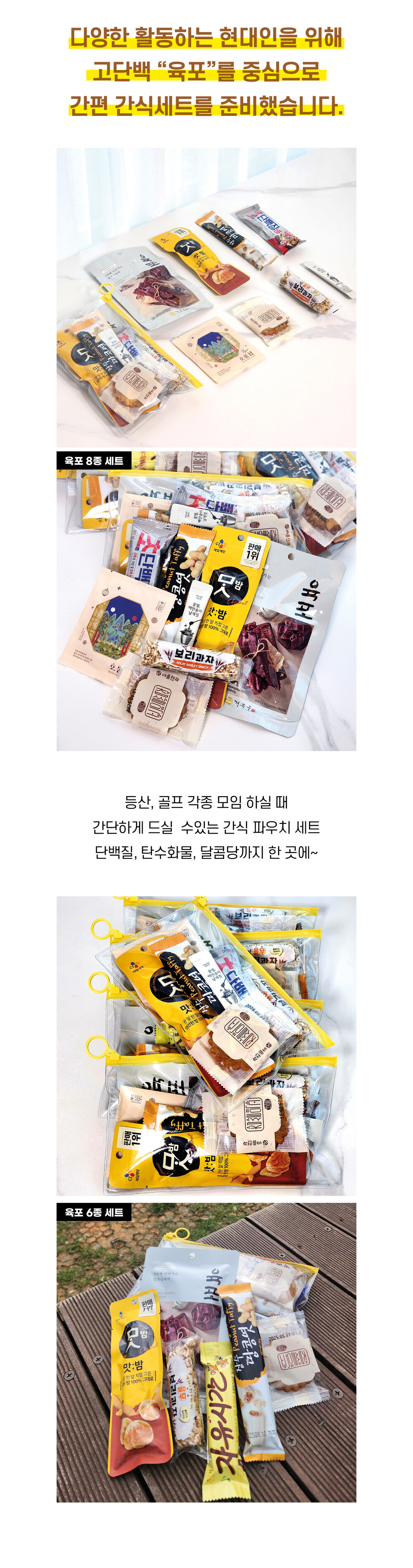 “육포”를 중심으로+탄수화물+달콤 당으로 구성하였습니다.